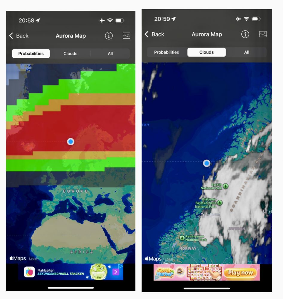 当晚的极光预报,我们已经出北极圈了