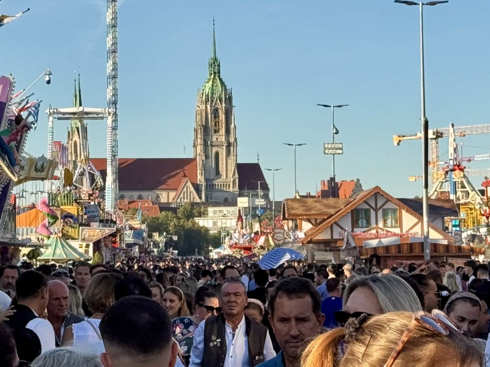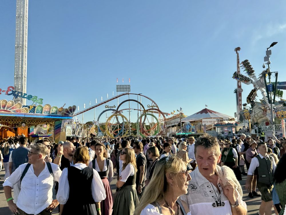 我们来这里只是凑热闹,我女儿说这里有点像是成人版的迪斯尼乐园。2025年的慕尼黑啤酒节将持续到十月五日结束。
