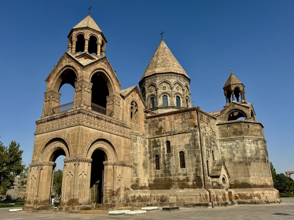 埃奇米阿津大教堂 (Etchmiadzin Cathedral) 建于公元四世纪,被认为是世界上最古老的基督教堂。目前的教堂是在原始建筑上经过数次修缮之后建成的。