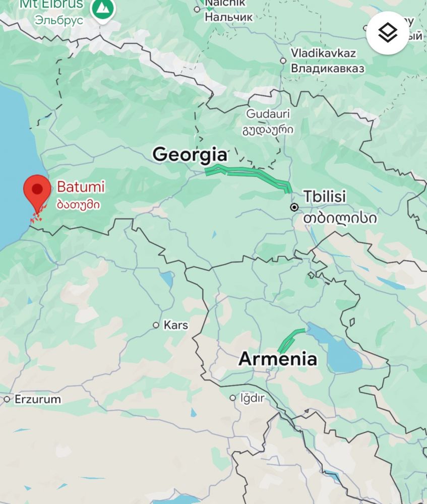因为不想太赶,我们给了很宽裕的时间去火车站。我们先去机场还了车,用Bolt App 叫了网约车去火车站。当时有点大意,本有足够的时间去核实火车站的地址,但还是忽略了。去火车站的路也没太堵车,25公里的路却开了一个多小时,也许司机走了一条红绿灯多的路。 司机到达目的地之后,刚一下车,就有人在喊,“Batumi, Batumi”,那是在找人拼车去Batumi(巴统)。有人上来问我们要不要去巴统,我们订好了火车,当然不会拼汽车去巴统了。但我们也没看见火车站的进站口,问了周围的人,他们都不知道,这才觉得不对,马上查地图,结果发现是自己去错了火车站,我们上车的火车站是在四公里外的另一个地方。因为还有半个小时,再叫一辆车过去也还来得及,我于是又叫了一辆网约车,这次把地址打对了。但这辆网约车在赶来的路上却被堵住了。 LD急忙敦促我,让我取消网约车,改乘停在身边的taxi。我觉得已经等了好几分钟了,网约车已经快到了就没去搭taxi。后来发现不改搭taxi是个错误,因为等了十分钟后网约车才到,浪费了赶火车的黄金时间。上了网约车后,真正崩溃的一幕来了。路上车多,车开不快,4公里的路程,硬是开了二十分钟,火车十分钟之前开走了,天不助我也。当天的火车就这么一班,那接下来就没什么选择了,只能去刚才去错的地方拼车了。汽车肯定不如一等座的火车舒服,但最后的还是天无绝人之路,总算当天赶到了巴统。
