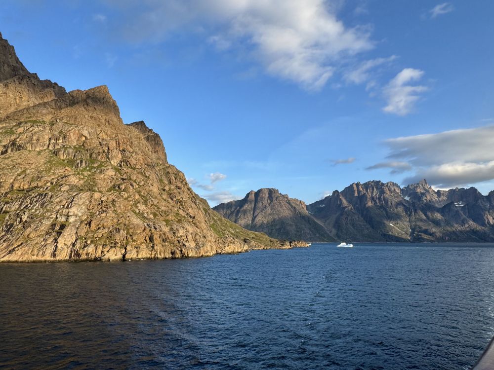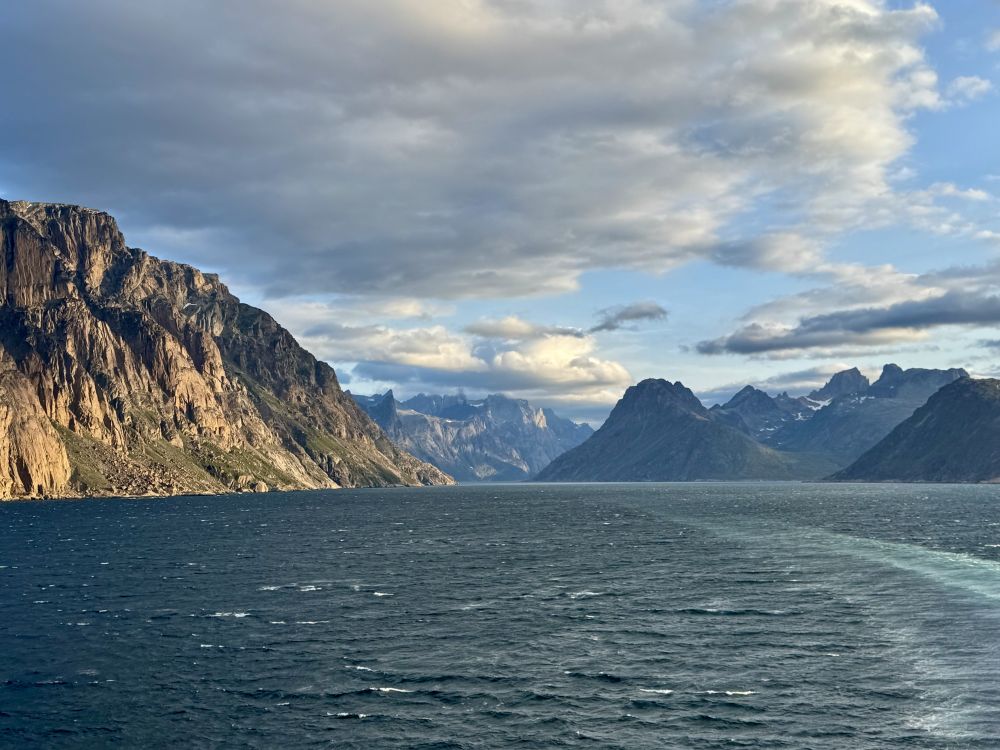 我们今年八月份乘邮轮去格陵兰,多少是受了女儿大学的一位中国同学的家长的影响。在今年年初的中国同学家长群聚会的时候得知,这位同学的家长参加了一个今年七月份出发的的豪华邮轮团,行程包括北欧挪威,格陵兰,北极圈内的斯瓦尔巴群岛等,全程二十天。因为整条邮轮都被这个中国团包下了,费用不菲,每人十四万人民币。我们本来就订好了八月份乘邮轮去北极圈斯瓦尔巴群岛,然后去北挪威,只是这艘邮轮在去北极圈之前正好要先去格陵兰,我们于是就把格陵兰的行程加了进来,两段航程连在一起,一共三十二天。尽管我们订的大洋号邮轮多少也算是豪华邮轮的一类,但费用却只不过是他们国内包船游的一个零头。虽然这么说有点夸张,但国内的那些大款们的潇洒,我们一时半载还没法学会。