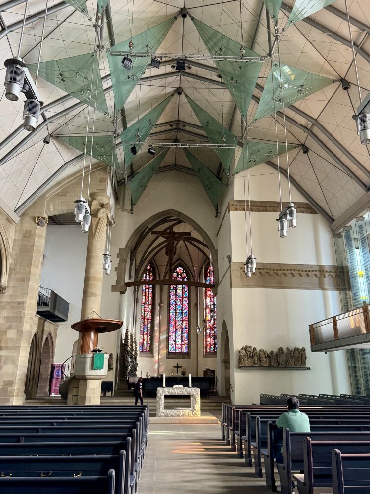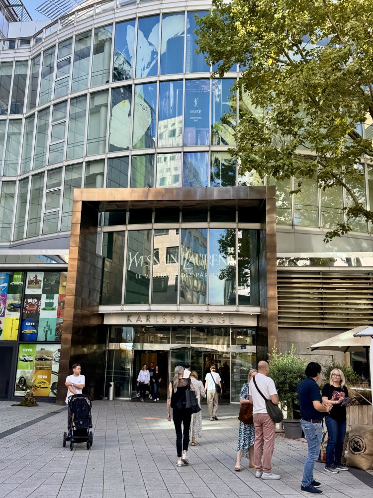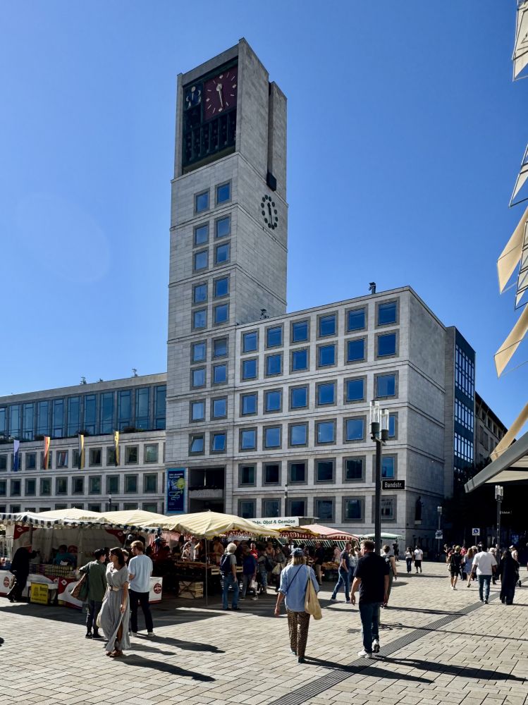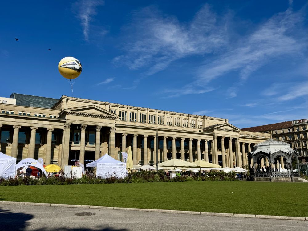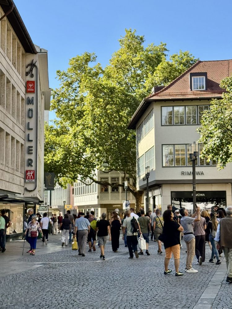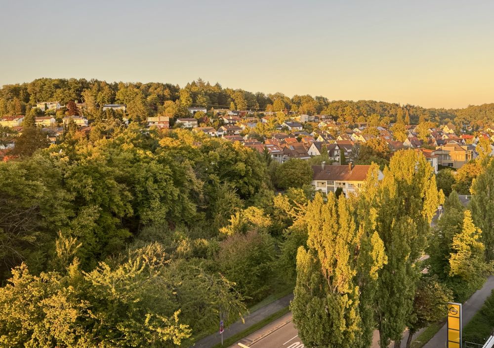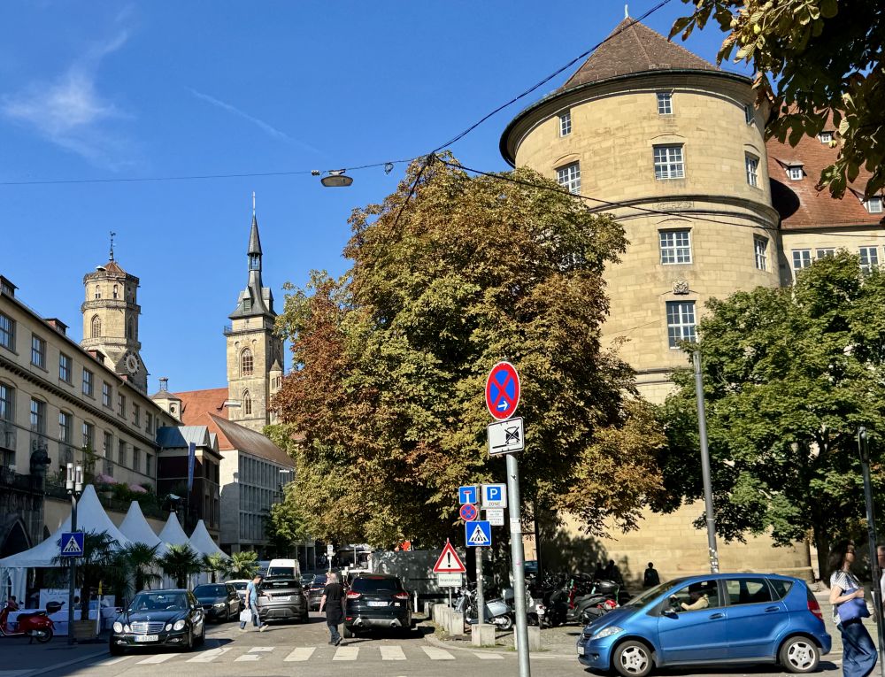 我们这次来到斯图加特也纯粹是因为路过。 来到斯图加特时注意到,斯图加特的旗帜上有一匹黑马,和我们车上盾徽上的黑马好像是一样的。来到斯图加特,才意识到斯图加特是一座建在山谷之中的一个城市。也许是因为与黑森林为邻,斯图加特市区的树木特别多,市区的绿化率非常高。