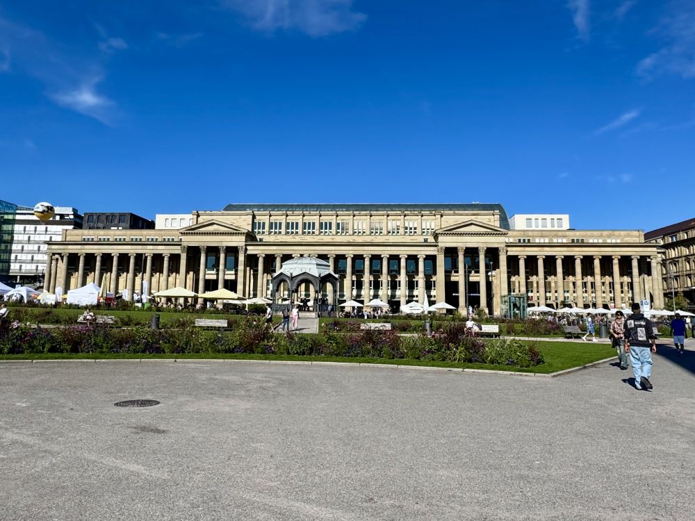 毕竟斯图加特是个工业城市,二战时期被盟军作为重要的军事目标被轰炸过数次,市内的建筑几乎都被摧毁,好在后来德国对损毁的古老建筑进行修复重建,虽然耗费巨资,但至少还原了部分十九世纪以前建筑的基本面容。新国王宫就是战争结束后修复重建的。