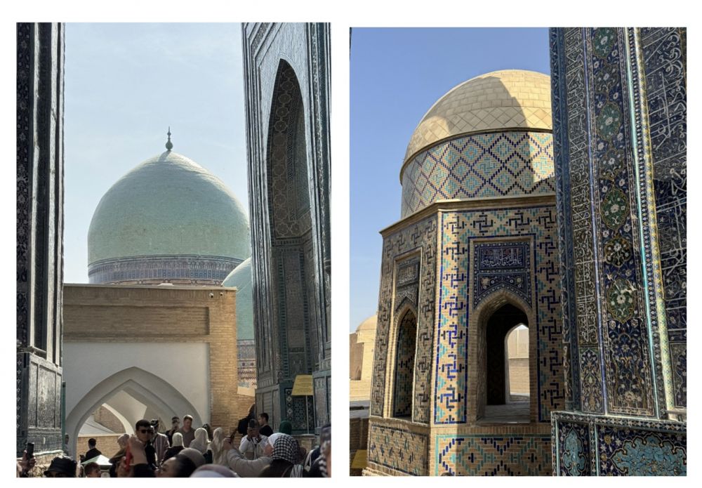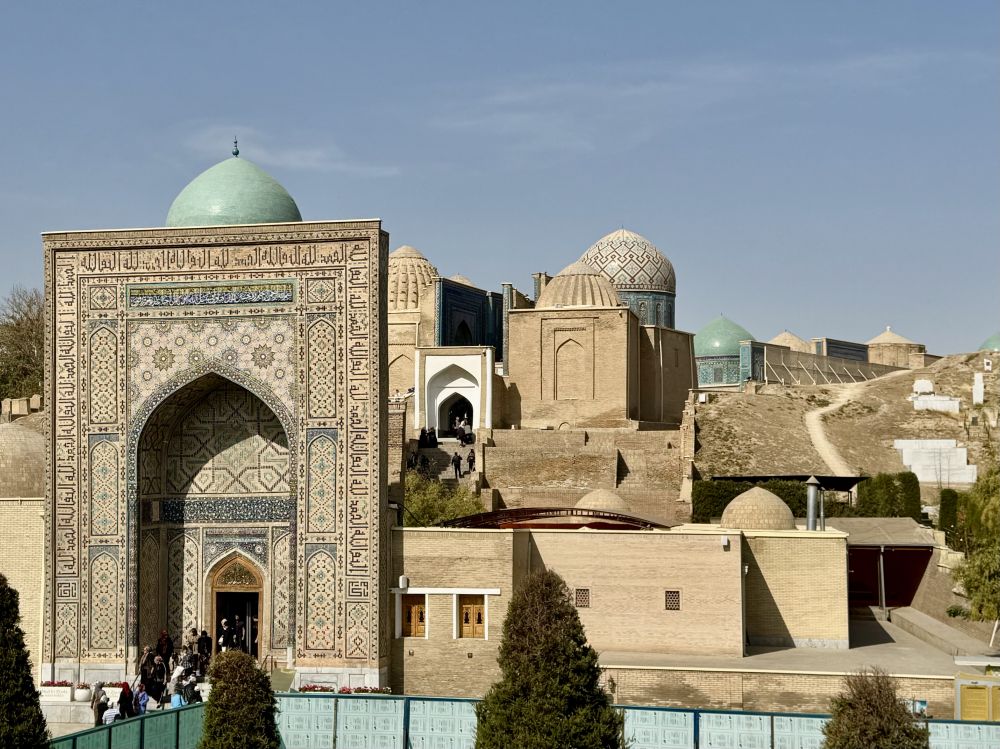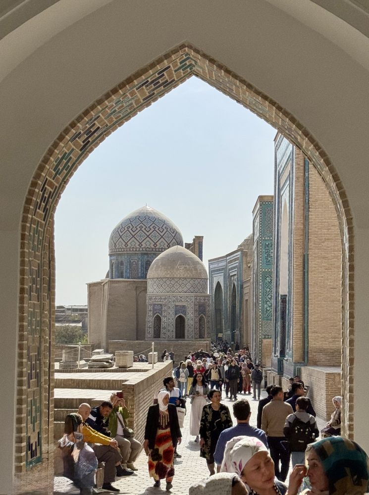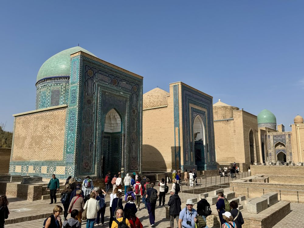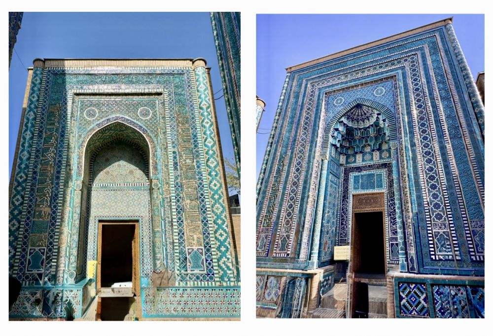 Shah-i-Zinda(沙伊·津达)建筑群包括11至15世纪和19世纪的陵墓和其他宗教建筑,这里是埋葬撒马尔罕历代皇亲国戚,帝王将相的陵寝。