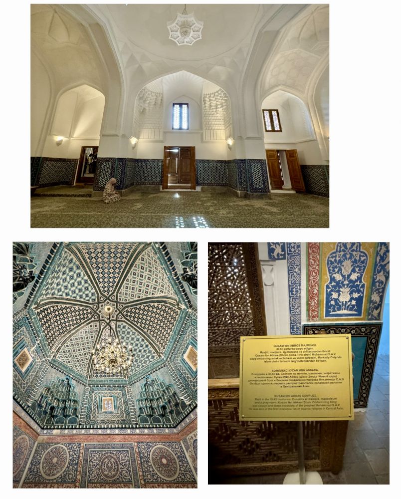 Qutham ibn Abbās(库萨姆·伊本·阿巴斯)的陵墓。阿巴斯是乌兹别克境内第一位伊斯兰教传教士,也是乌兹别克伊斯兰社会最有影响力的人物。阿巴斯来自麦地那,他是伊斯兰创立者穆罕默德的表弟,于公元677年死后葬于撒马尔罕的沙伊·津达陵墓内。