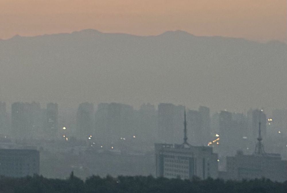 天山的轮廓只有清晨能看到一点,白天的天山被云雾覆盖