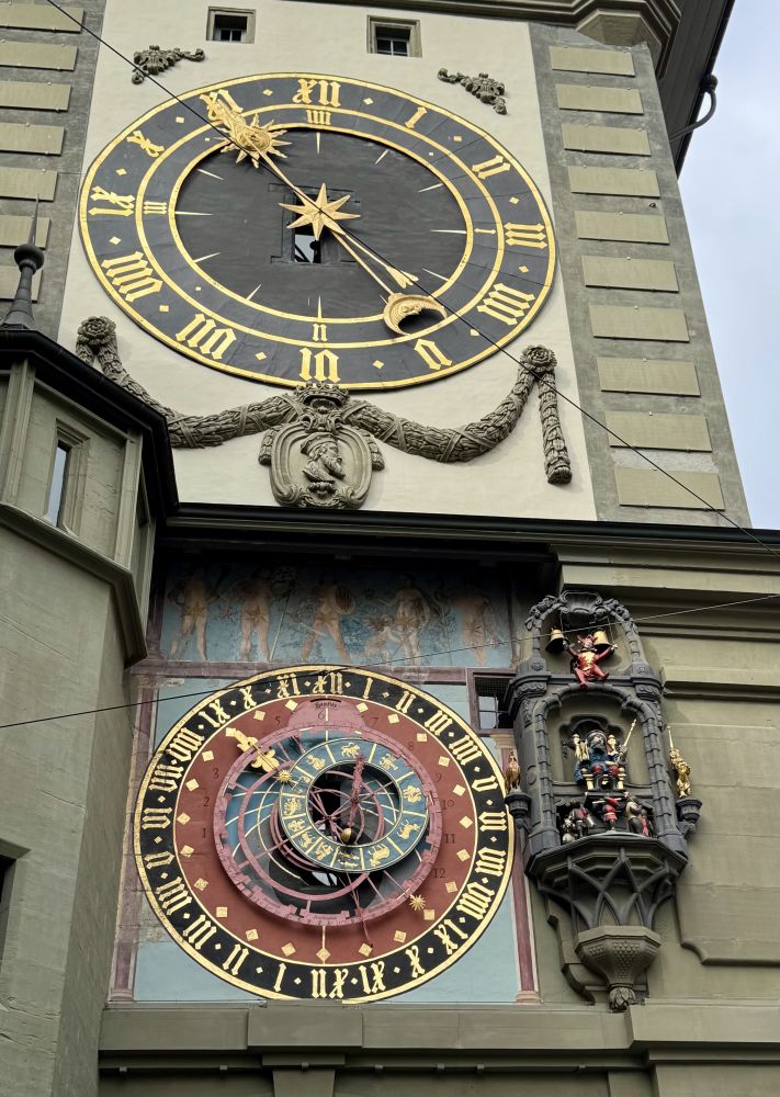 一不留意,差一点错过爱因斯坦曾经的住所。这位天才的科学家就是当年在附近的伯尔尼大学执教期间,琢磨出了物理学中相对论的理论。虽然高达百米的伯尔尼老城教堂是伯尔尼的地标建筑,但位于老城中心的天文钟也是伯尔尼的一个重要标志。每隔一个小时,天文钟响起,钟里面的金色的机械小人会出来表演一番。这座拥有八百年历史的古钟实际上成为了伯尔尼这座城市的像征。