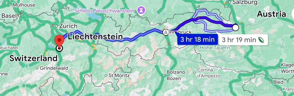 按事先安排好的行程,我们在奥地利萨尔茨堡附近的蓬高圣约翰(St Johann im Pongau)小镇呆了一个星期之后,下一站就是去瑞士卢塞恩(Luzern)附近的莫尔沙赫 (Morschach)小镇,在那里要住上一个星期。奥地利距离瑞士的酒店大约在450公里左右,车程要八个多小时,我们计划是在半路奥地利的因斯布鲁克(Innsbruck)稍作停留,吃过中饭之后,再继续向西赶往瑞士。另一个计划停留的就是包夹在 奥地利和瑞士中间的小国列支敦斯登(Liechtenstein)。因为列支敦斯登国家小,又没有旅游资源,所以在世界上没有什么知名度。但我们反正是路过,那就不妨进去看看。