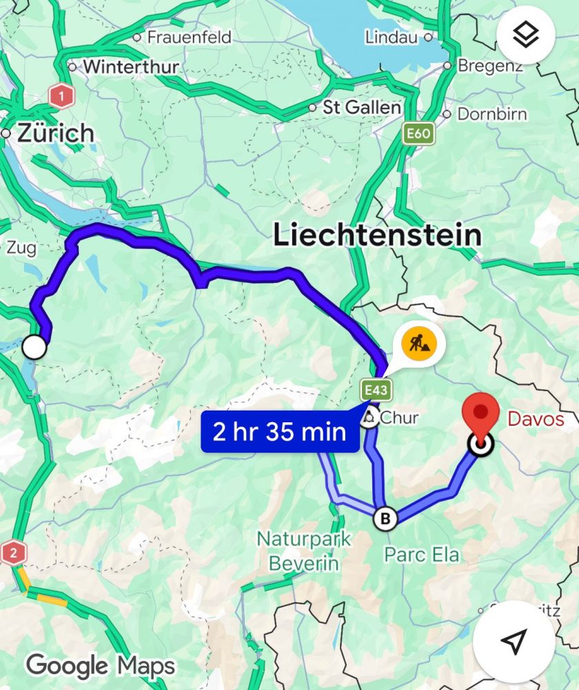 有意思的是,世界经济论坛每年都选择达沃斯一年中最冷的时候开年会,大雪对进出达沃斯的交通是一个考验。我们去达沃斯的时侯是在十月初,还没到下大雪的时候,所以我们取道瑞士小城库尔(Chur),然后经 Albula 走山路进入达沃斯,路上还能看到在瑞士山里钻进钻出的 Bernina Express 火车,这列火车可以带你去意大利。