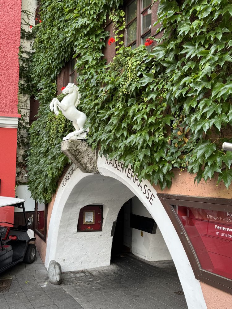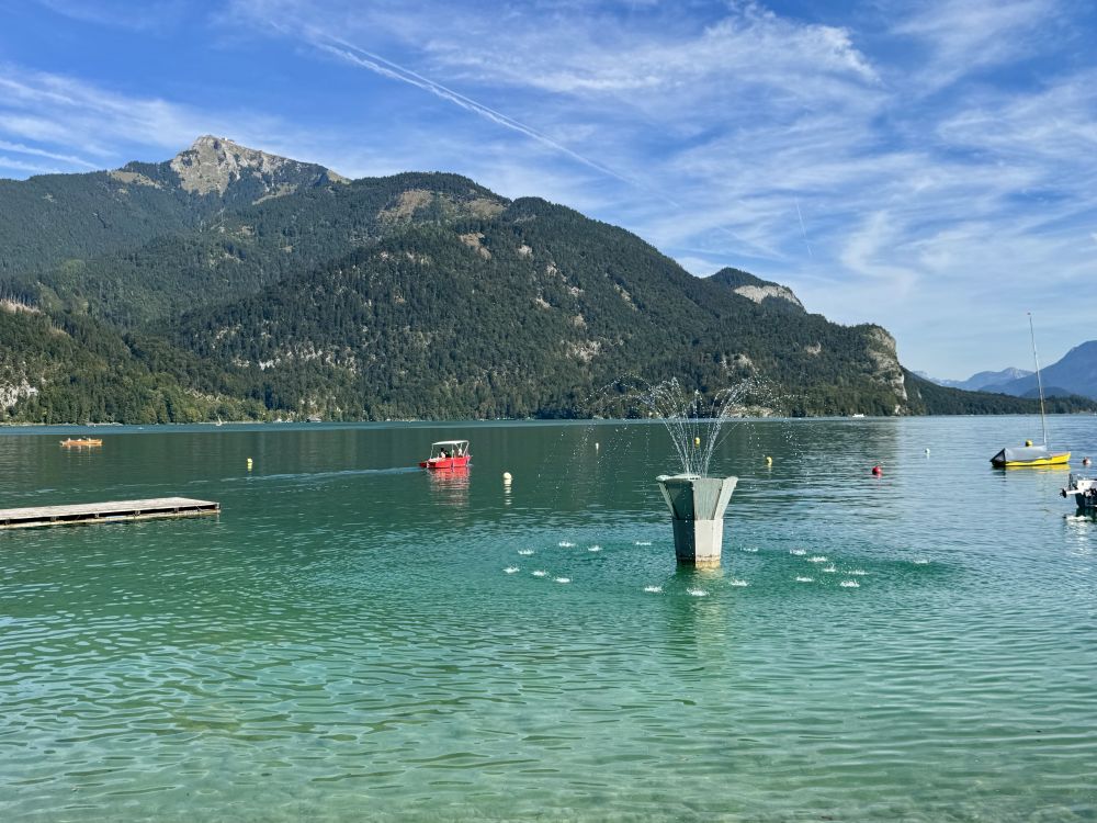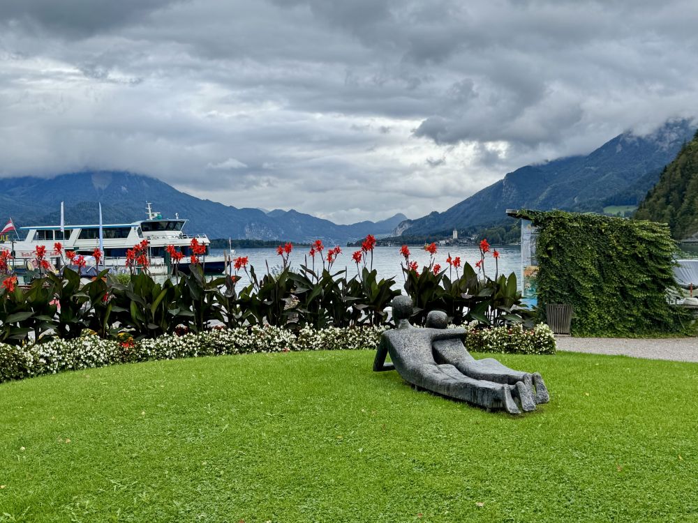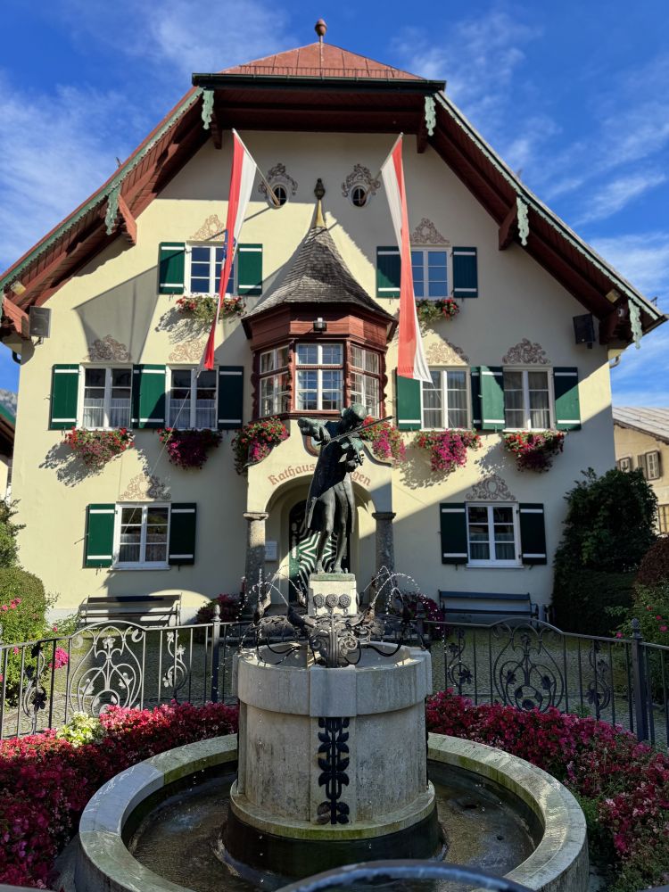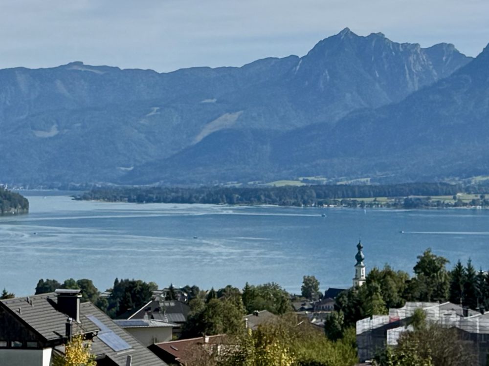 上次来奥地利的沃弗冈湖(Wolfgangsee)还是在25年前2000年,那时我们也是开车了先到了奥地利的萨尔茨堡,然后在行程中找到了一个机会来到了一个叫圣吉尔根(St Gilgen)的小镇,这个小镇就坐落在沃弗冈湖边。圣吉尔根位于萨尔茨堡以东大约三十公里,小镇看上去和其它奥地利小镇一样,有一个楼顶高耸的小教堂,老远都能看见,小镇上一个个色彩各异的小房子窗外阳台上装饰着各式各样的花草。镇上行政厅的门前,建有一座塑像,上面是奥地利天才音乐家莫扎特在拉小提琴。这个小镇之所以特别,是因为莫扎特的母亲出生在这个小镇,莫扎特的姐姐也曾住在圣吉尔根。因为莫扎特的关系,这座小镇有时也被称为“莫扎特村”。可以看出,奥地利人为能产生出莫扎特这样的天才而有多么自豪。