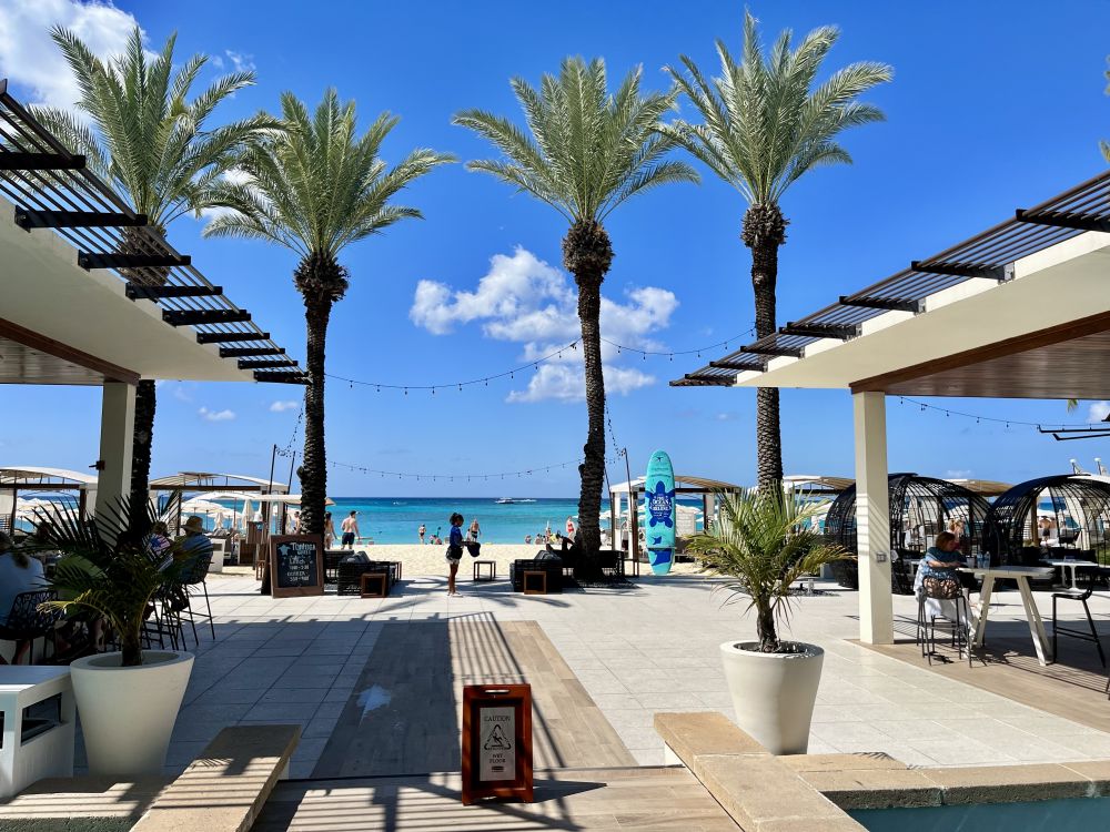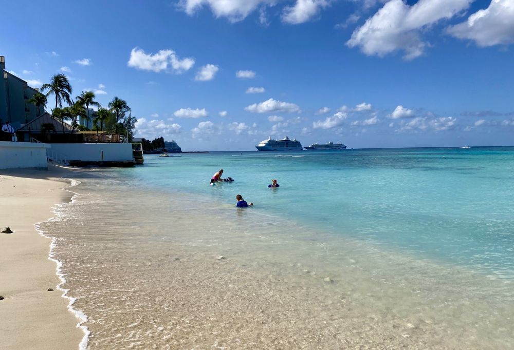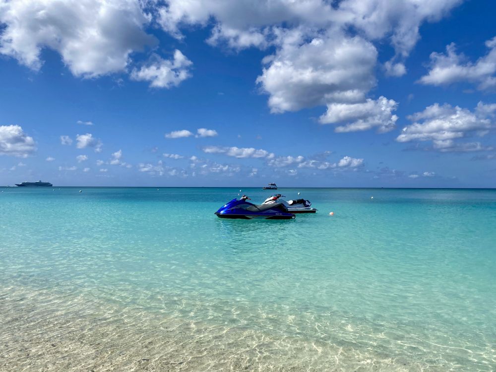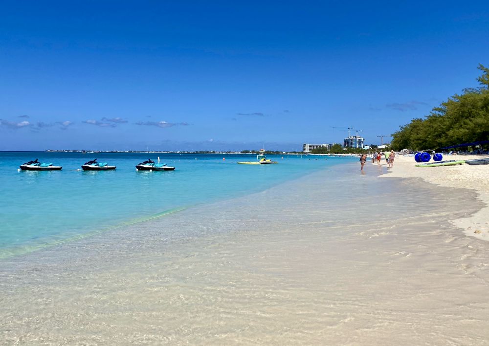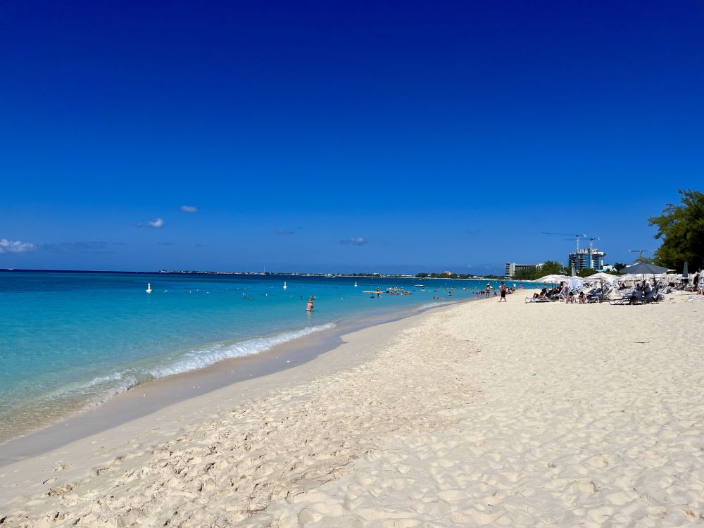 著名的七里海滩位于大开曼岛的西端,这是一条长约七英里的珊瑚沙滩。这个海滩离市中心码头不远,可以从船码头步行走过去。七里海滩呈月牙状,海滩边建有多个包括万豪,丽思卡尔顿和威斯汀等在内的高档度假酒店。人们在海滩上散步,晒太阳,游泳。另外,海滩上还能找到各类水上活动的设施,如帆船,摩托艇,浮潜等。我们在海滩上尽情漫步,享受着温柔的海风和美丽的景色。要不是因为赶着回船上,我们恨不得一直走完这个七英里海滩。我们最终在丽思卡尔顿酒店门口叫了辆出租车,带我们到了乔治敦的市中心,这里离船码头步行只需几分钟的时间。