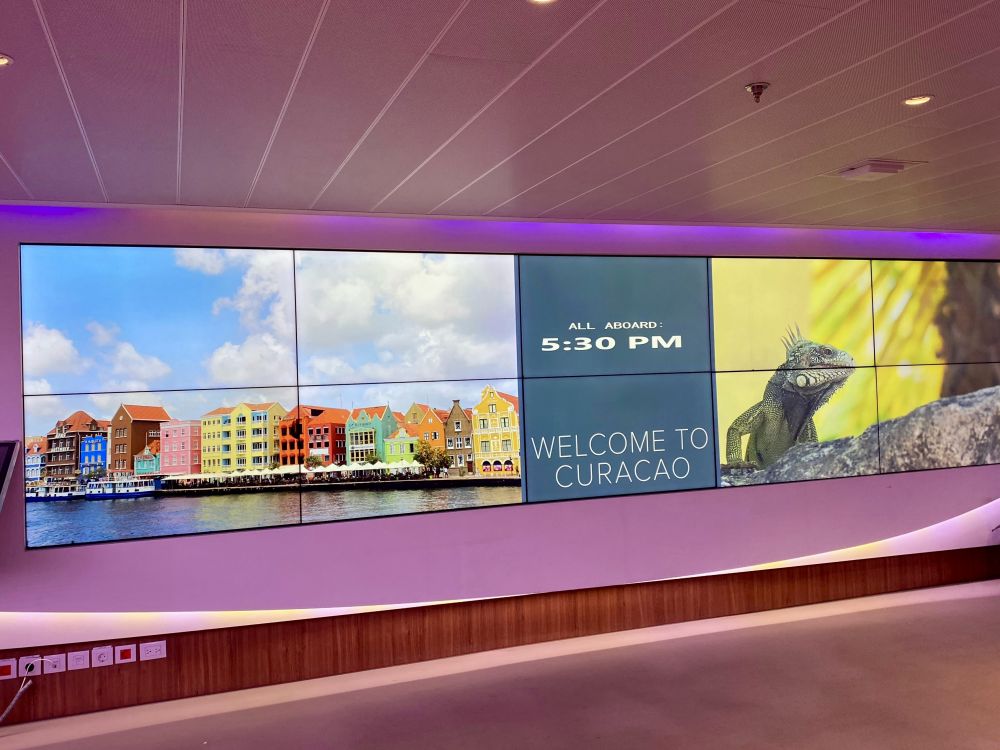 到达库拉索,屏幕上显示提醒最晚回船时间