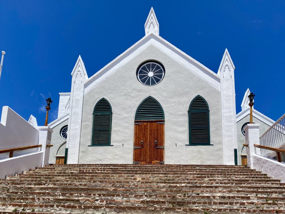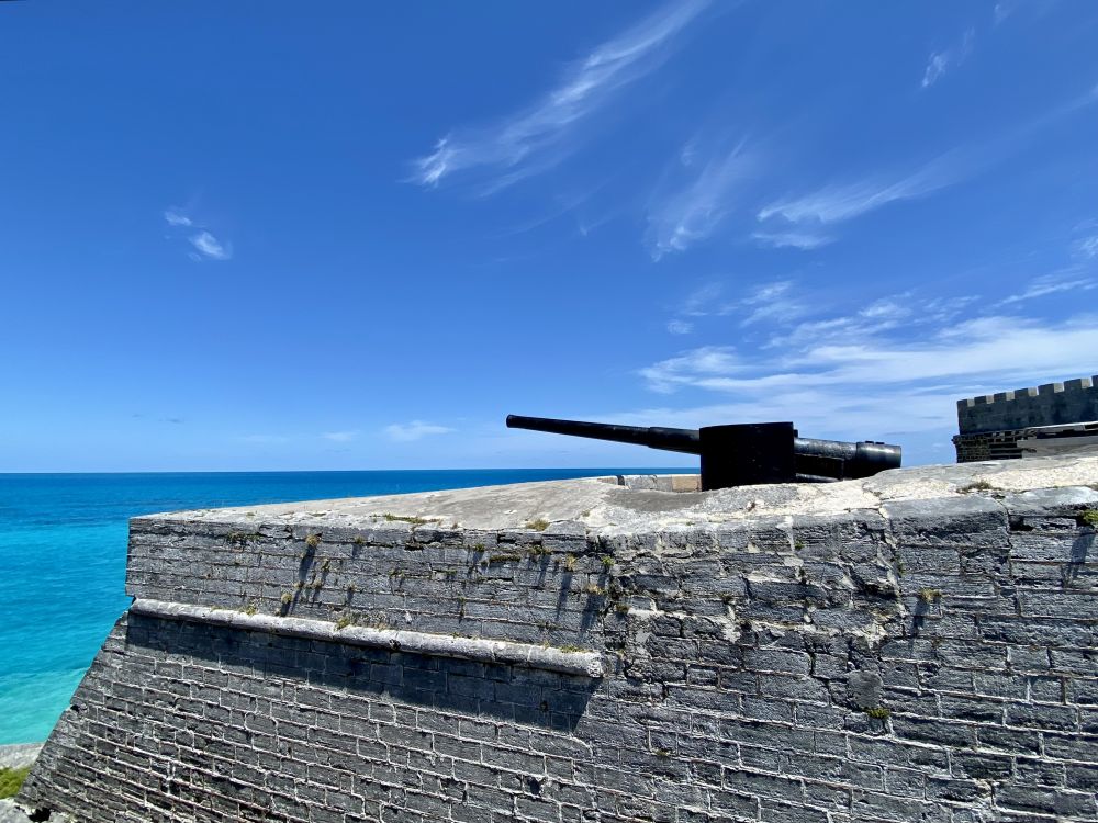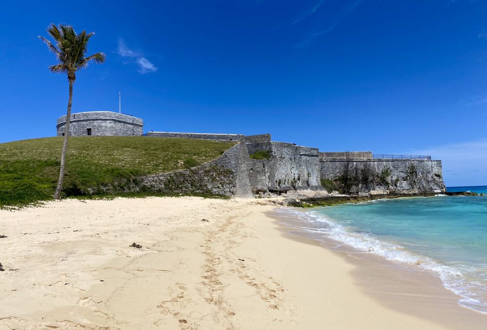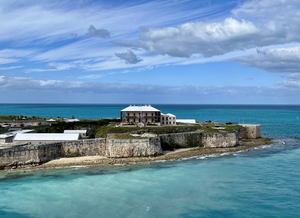 我们是乘坐跨大西洋邮轮经过时来到百慕大的,两次都停靠在了皇家海军码头(Royal Naval Dockyard)。停靠这个码头坏处是这里离岛上任何地方都远,比如,去岛上中心地区的圣乔治就需要乘车穿过几乎整个岛,车程要一个小时。如果是乘公交的话,半路上还要在首府汉密尔顿转车,全程要将近两个小时。其实,圣乔治也有一个邮轮码头,但看上去比较小,似乎不能接受大型邮轮的停靠。除了乘车之外,从皇家海军码头去圣乔治还有一个简单办法,就是乘轮渡过去,只不过轮渡的班次有限,而且时常会因为风大或天气不好会停航,我们两次来到百慕大都没能坐上这个轮渡。