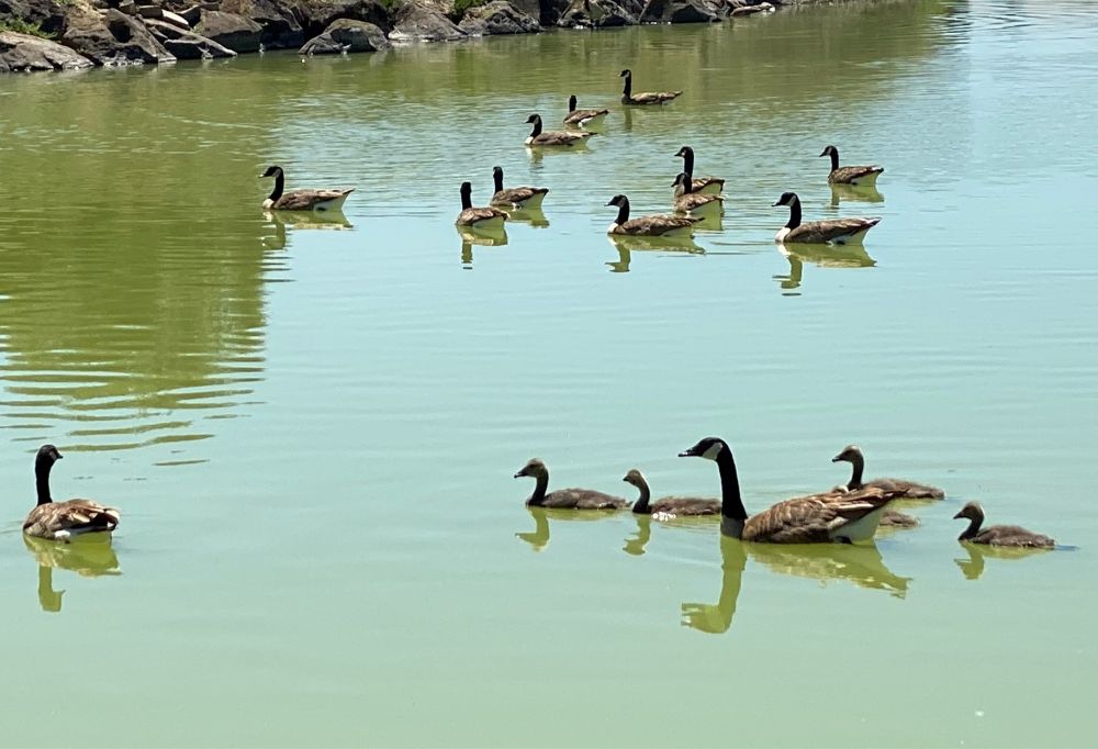 因为疫情的缘故,水上乐园和运动行动公园暂时关闭了。五月的下午,阳光柔和,我和先生绕湖转圈。公园里可见三三两两,带着口罩的游人。