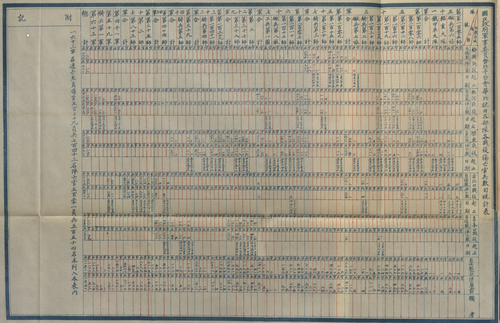 和国军战场的死亡数(北平军分会统计,从下表归纳)相比