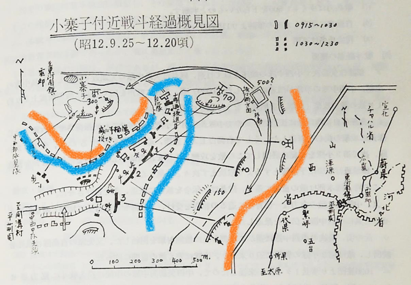 所以林彪期待进入其“口袋阵”的肥肉,并不是从灵丘方面过来的“主力”,林彪已知道此日(9月25日)不会有任何赴前线的敌主力进入此地。期待的只是万一国军在前线“获捷”时,从关口前线方向退下来的残敌。此意图,从进入其口袋阵的日军自动车队绘制的作战要图中也可一目了然。林师的口袋口,并不是指向灵丘(北方),相反对着前线关沟村方向(南方)开启。