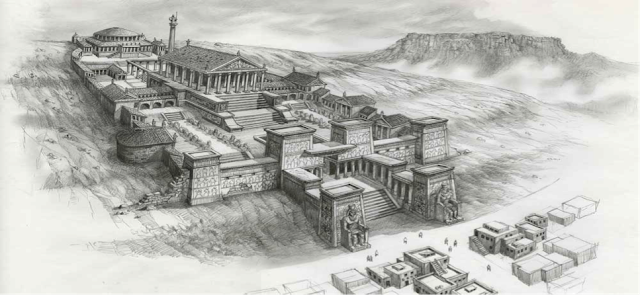 下面的图:亚历山大利亚图书馆, 据说有 二十万卷到七十万卷的收藏。凯撒来到埃及后,图书馆的建筑在一次火灾中被烧毁。马克 安东尼来到埃及后,他比着在博伽玛图书馆的馆藏,至少恢复了二十万卷的馆藏。马克 安东尼很爱好文化,他还参入建造了其它的文化建筑工程。据说,马克 安东尼开始的一项巨大庙宇的工程后来由屋大维完成了。