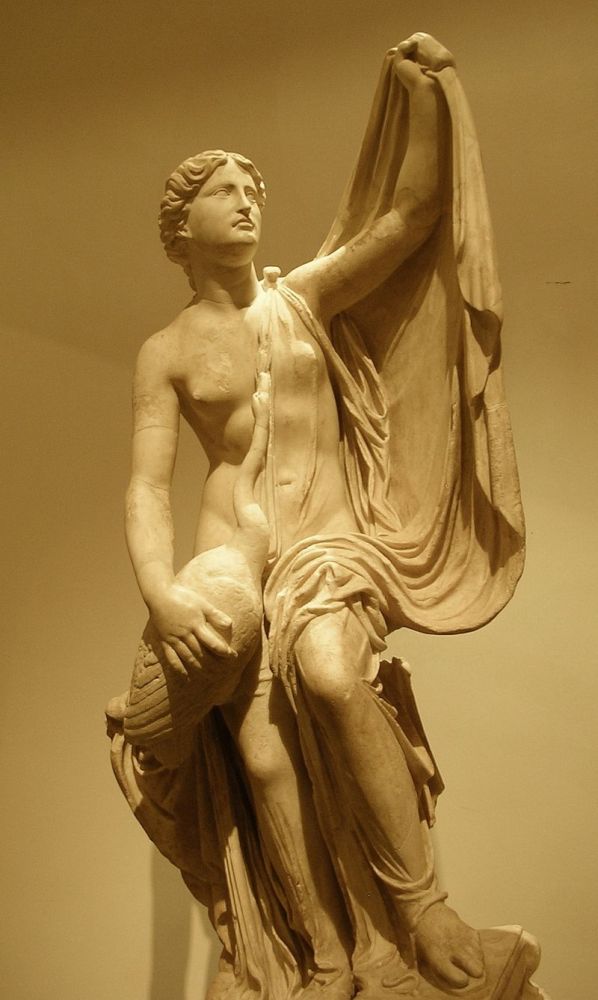 下面的雕塑是 “ Leda and Zeus“ (丽达与宙斯。 丽达是个公主,凡人。宙斯的故事之一:为躲赫拉,宙斯装成鹅,后来下两个蛋,其中一个是海伦 Helen,引起特洛伊战争的海伦。我以前第一次看到海伦被归到英雄一类,有点不理解,就 search了一下。跑一下题吧。)
