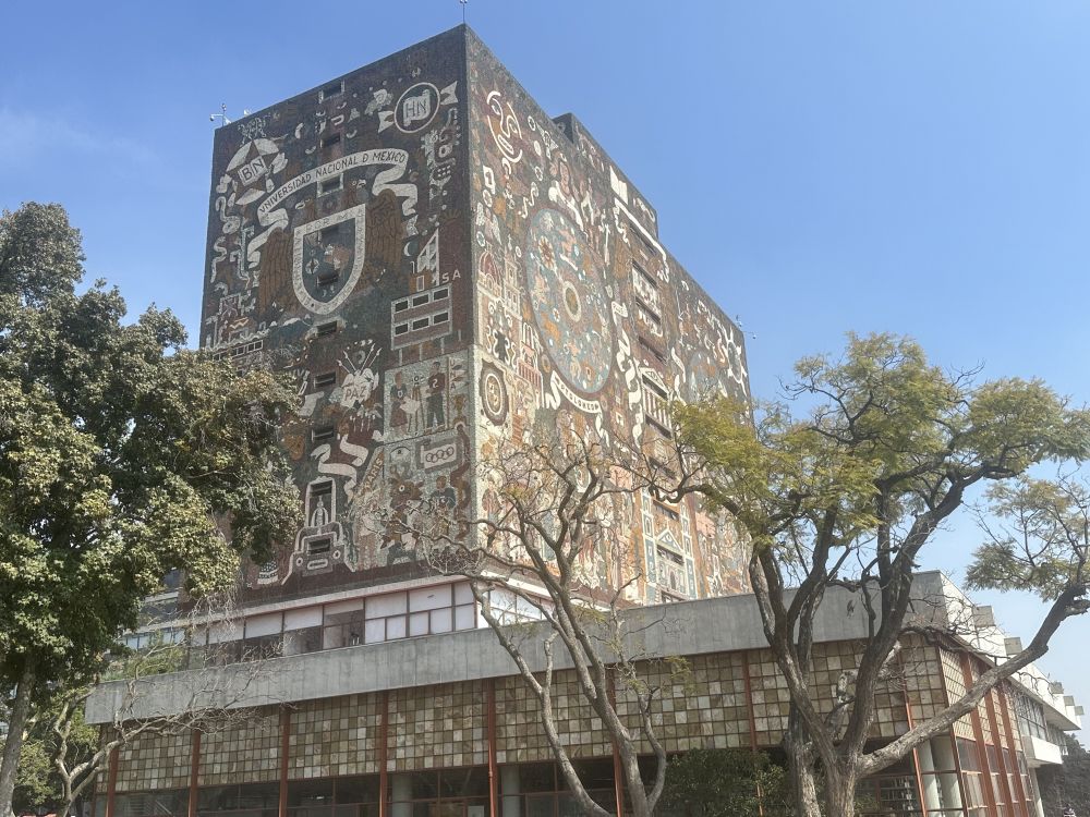 墨国大是凭借学校建筑物的巨型壁画艺术被列入世界文化遗产的。 墨国大的前身是1551年成立的皇家和天主教大学,1910年改成国立大学。1949年墨西哥政府为了把分散各地的校园集中在一起,在当时还是墨西哥城郊区的7.3平方公里土地上建设新校区。由60多建筑师,设计师和艺术家共同主持墨国大建筑物的设计,他们把20世纪的现代建筑与墨西哥当时流行的壁画艺术完美地融合在一起。