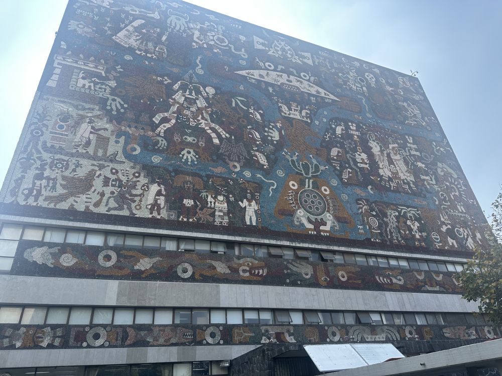 墨国大最大最著名的壁画是中心图书馆的四个建筑立面,共4000平方米,楼高十层,除第一和第二层以外,全部都是壁画。这个壁画由胡安·奥戈尔曼(Jua O'Gorman)设计,名为《文化历史的表现》。图案用墨西哥的彩色石头拼贴,代表着墨西哥的地理与文化。整个壁画是一个讲述墨西哥历史的巨型画卷,四面墙体表现了从古代经过殖民时期到现代的历史过程。北面墙上介绍的是阿兹特克文明的前西班牙时期,南面介绍的是西班牙殖民时代的压迫与冲突,东面介绍了现代世界的科学,教育和宇宙,西面介绍了大学与当代墨西哥。