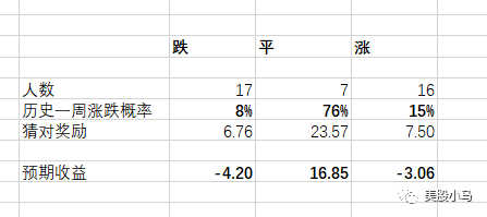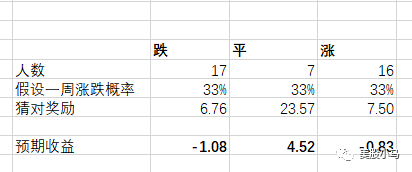 猜平的预期收益从4.52 上升到了16.85,而猜涨跌的预期收益依旧都是负的。