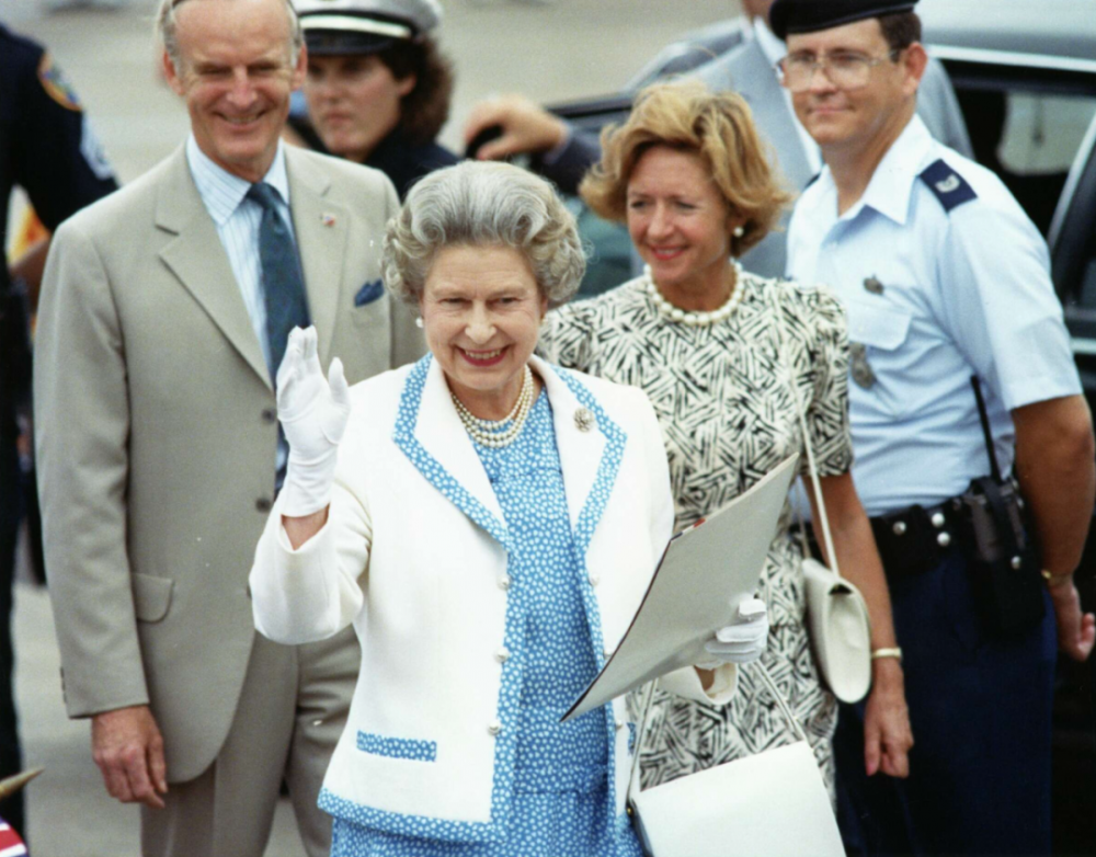 结束了为期三天的德州之旅后,女王在艾灵顿空军基地向送行的人们挥手告别。