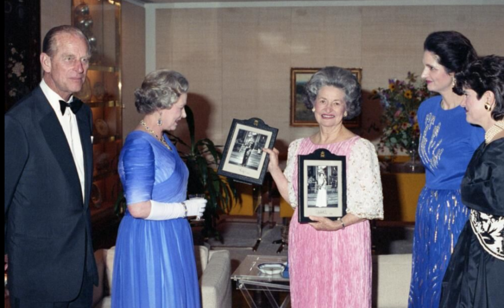 参加了在坐落于奥斯汀的 Lyndon Baines Johnson Library and Museum (林登 · 约翰逊总统图书馆暨博物馆 )内为女王举办的招待晚宴后,女王与美国前总统约翰逊的夫人 Lady Bird 相见。