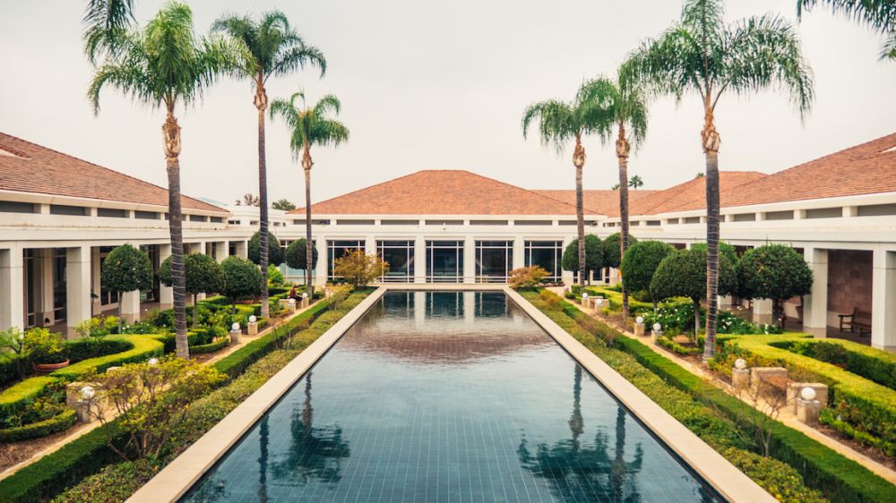 里根总统图书馆及博物馆(Ronald Reagan Presidential Library & Museum)是美国第40任总统罗纳德 . 里根的总统图书馆及其最后的归宿。参观里根总统博物馆的前一天在洛杉矶的“星光大道”上寻到了属于里根的那一颗。第二天便来到了他的家乡小城Simi Valley,浏览他作为总统的功过及日常生活。里根总统博物馆是唯一一座展示空军一号专机的总统图书馆,因此也是美国现有的总统图书馆中最大的一个。整个建筑采用西班牙殖民时代造型,有一座悠静的喷泉中庭花园。馆内面积百亩,馆中收藏诸多里根总统在职期间所签署的重要文件和数以万计的白宫书面记录及历史影片。在主要的展示中心区还可以看到里根总统私人生活的点点滴滴。应该说里根在美国是比较受民众爱戴的总统之一,在他的任内,美国通货膨胀得以遏制;世界风云波涌,他一手推动的苏联解体使得美国成为唯一的世界强权。。。