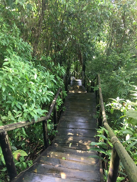 那里缥缈的迷雾、流泻的飞泉、参天的大树、遍地的藤萝及五色的飞鸟和野生的动物编织成了一大片神奇而迷人的热带雨林,又是一处“地球之肺” !