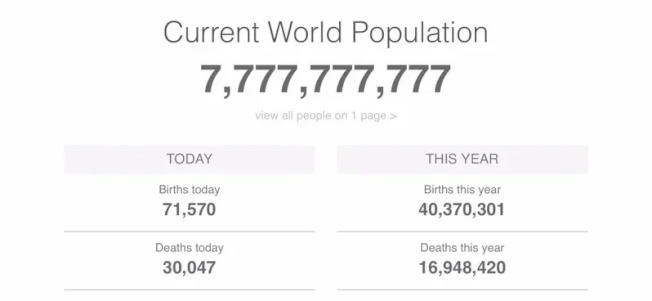 今天介绍一个网站,WORLDOMETERS.COM,它的网页自从1月份就长期在我电脑上开着,我引用的数字也大多来自此网站。疫情前从来没访问过该网,太过科学性,不是本人兴趣所在。这原本是一个根据联合国、世界卫生组织所公开的官方数据,推测并模拟当下人口的计数器。该组织的数字被多国政府和机构信赖并引用。几天前有网友捕捉到当前世界人口神奇数字瞬间,见图。