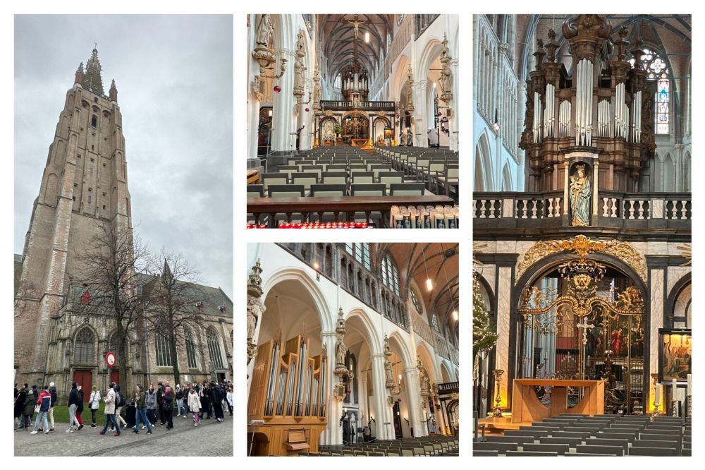两大广场之间,矗立着布鲁日最高的建筑 -- 圣母教堂(Onze Lieve Vrouwekerk),其附属的钟楼高达122米。教堂建于13至15世纪,通体红砖构成,也是全球第二高的砖式塔楼,里面收藏了米开朗基罗的雕塑作品《圣母与圣子》。这是老米生前唯一一件流出意大利的雕塑作品,要付费才能参观。