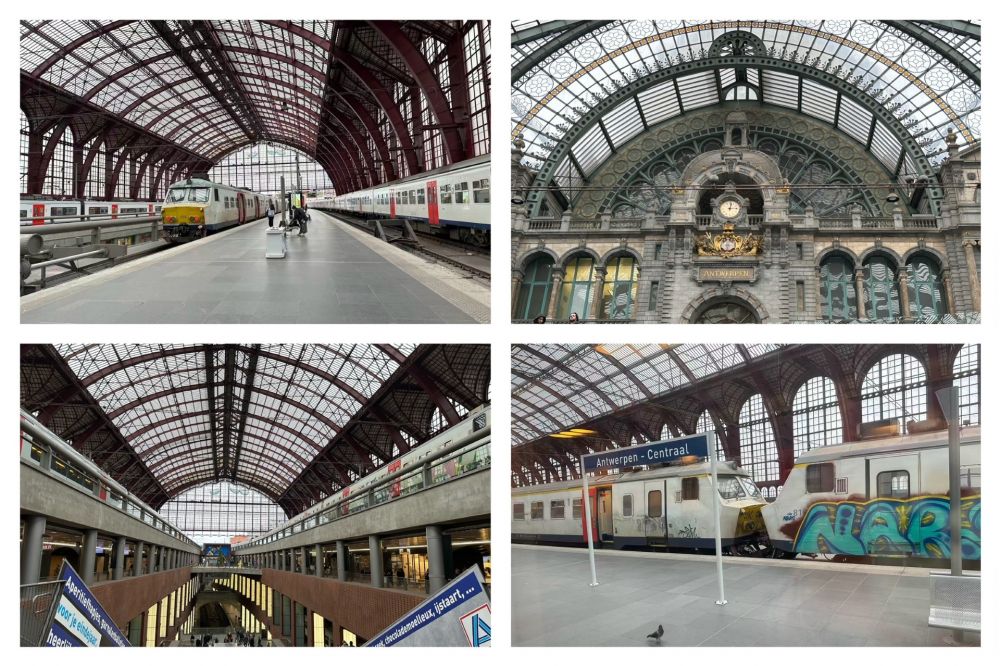 从阿姆斯特丹到比利时的布鲁日,坐火车大约4小时40分钟,中途需在欧洲最美火车站 -- 安特卫普中央火车站转车。