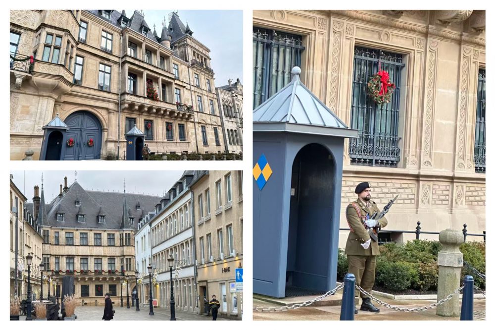 穿过几条幽静的石板小巷,首先来到卢森堡大公的官邸 -- 大公宫(Palais Grand-Ducal),不算显赫气派,但精致典雅,符合这个小国低调内敛的气质。据说夏季对外开放参观,适逢冬季,我们只能在门外欣赏它文艺复兴风格的立面以及站岗的卫兵了。卢森堡实行议会君主立宪制,在国号中还保留着“大公国”(Großherzogtum)的称号,全球唯一。上个月,在位25年的亨利(Henri)大公退位,亨利的长子、43岁的纪尧姆(Grand Duke Guillaume)正式登基,成为新大公。