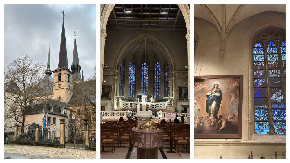 几步之遥便是卢森堡最重要的天主教堂 -- 圣母主教座堂(Notre-Dame Cathedral),建于17世纪。三个尖顶帽很有辨识度,教堂内部的彩色玻璃与哥特穹顶,营造出庄严而神圣的氛围,空气里弥漫着淡淡的香烛气息,地下室则安息着多位大公家族的成员。