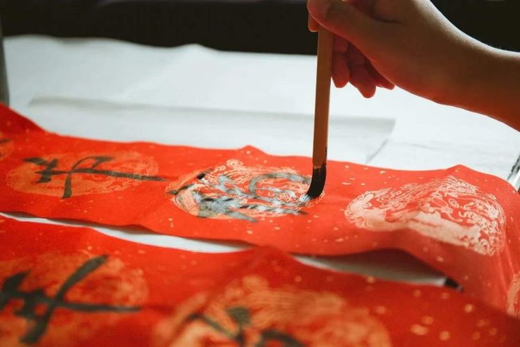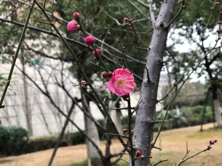 朝日东升红满下, 傲雪梅花三两挂。山河共舞庆新春, 风不大, 随点踏, 辞旧迎新鞭炮炸。