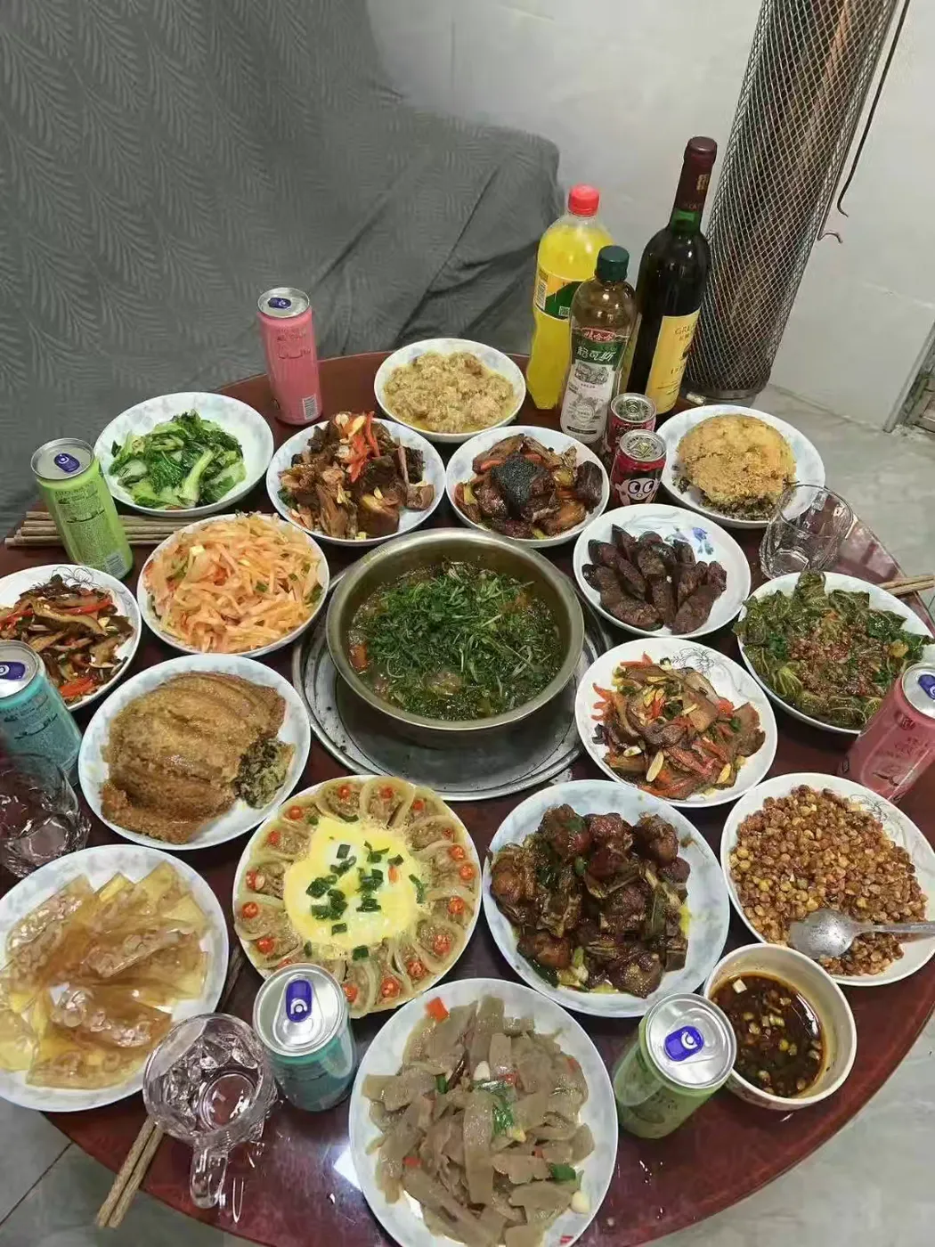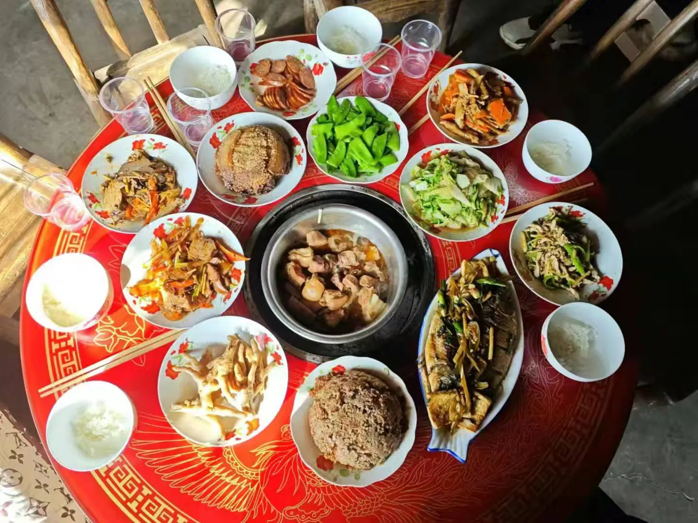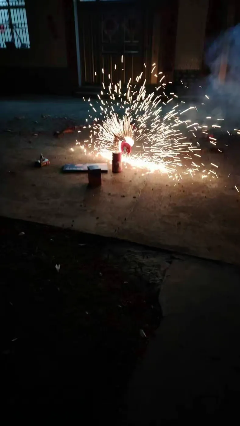 远近鞭炮高喧,后山前院醒, 烟花崔灿。一唱雄鸡, 天破晓,家犬欢呼相唤。福满乾坤,九天趁夜降, 世间弥漫。祥光财气, 只余昂首吁叹。