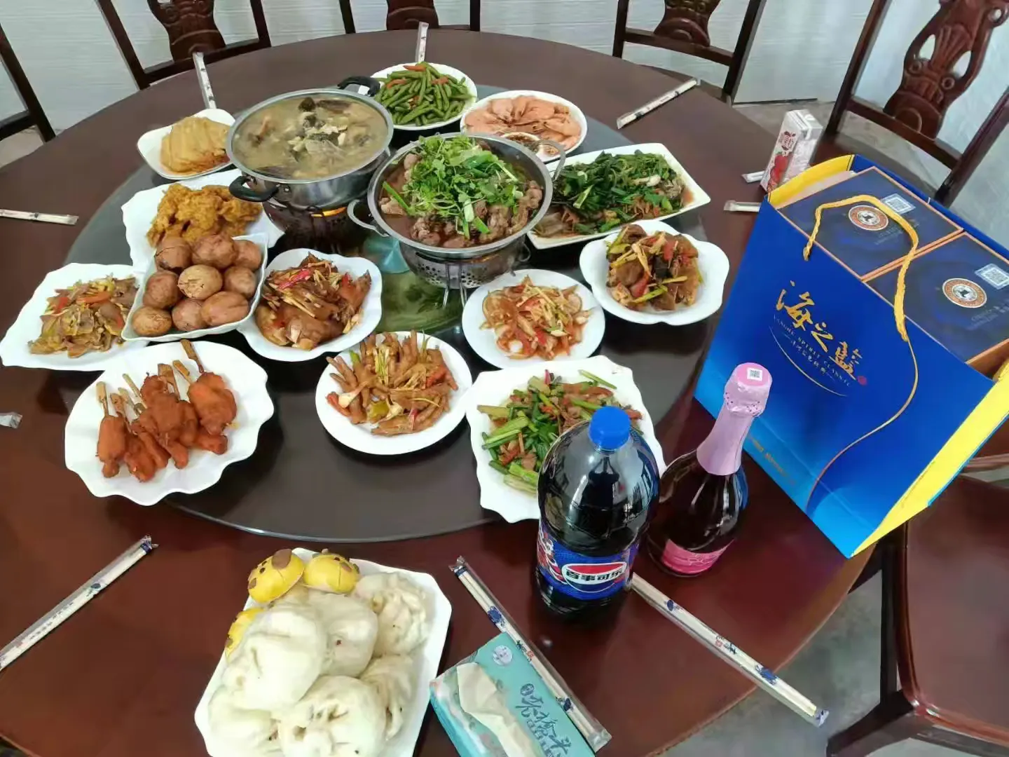 对联红艳, 劲鞭炸, 端上家人年宴。你敬他回, 真个是, 融化亲情万遍。议论从前, 安排以后, 一起商新案。时光飞速, 不觉年岁更换。