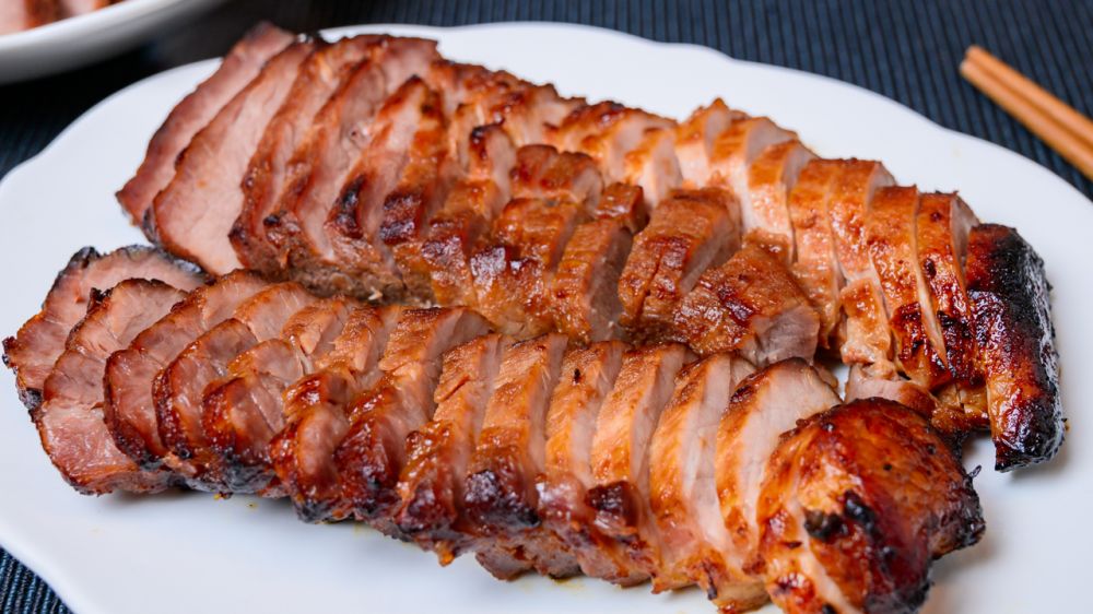 蜜汁叉烧是粤菜烧腊的经典。“叉烧”由“插烧”发展而来,最初是将猪的里脊肉加插在烤全猪腹内,经烧烤而成。后来,又改为将数条里脊肉串起来叉着来烧,久而久之插烧之名便被叉烧所替代。插在猪腹内烧,用的是暗火,以热辐射烧烤而熟;叉着烧的是明火,是直接用火烤熟的,这样全瘦的里脊显得干枯,故后来便将里脊肉改为带肥的梅花肉,并在表面上涂抹饴糖,使其在烧烤过程中有分解出来的油脂和饴糖来缓解火势而不致干枯,且有甜蜜的芳香味。