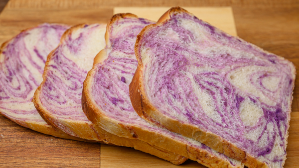 做法跟开酥的丹麦吐司类似,只是把黄油换成了紫薯泥
