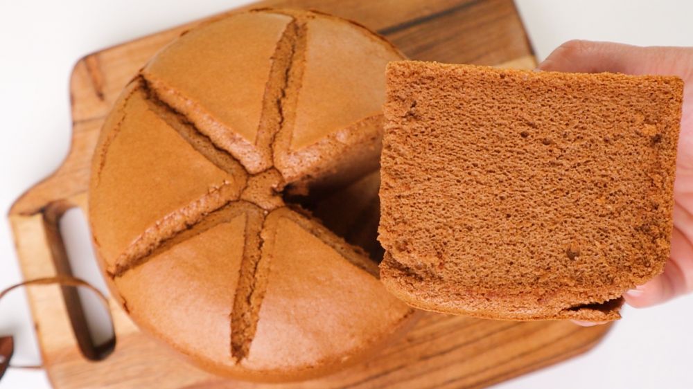 这个巧克力戚风蛋糕是我在原味蛋糕基础上改的,这个比例做出来刚好。用的是6x3的烤盘基本满模,做生日蛋糕可以做3层夹心,巧克力裸蛋糕很适合。拍的时候我喜欢展现食物本身的美,简简单单,这就是美食。喜欢开裂的表面,所以烤了开花造型,非常美。