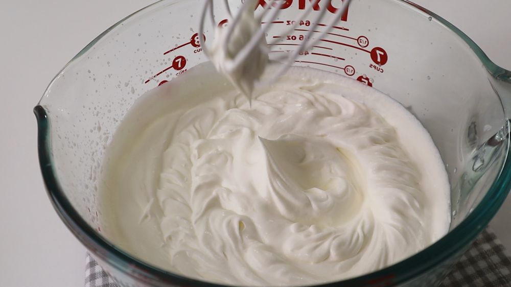 7. 奶油里面放入糖,打发到9分,也可以用白巧克力代替糖,等量替换就行