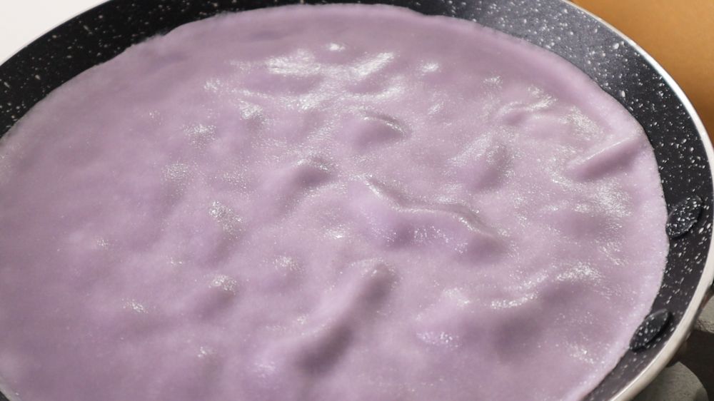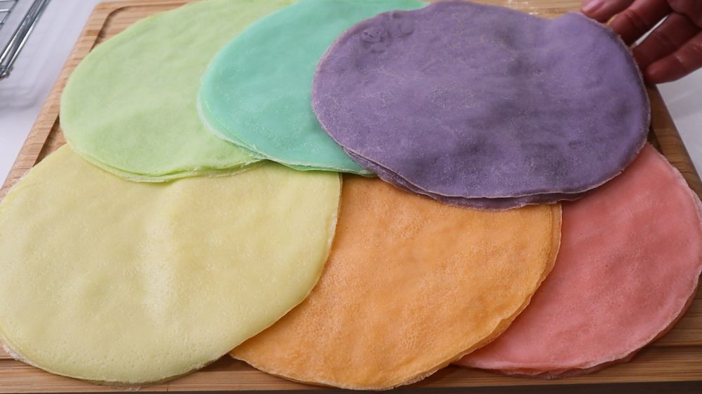 配方可以用6寸的平底不粘锅做18张可丽饼,每种颜色3张