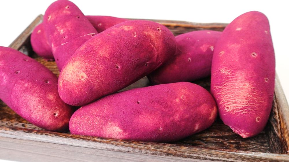 1. 准备2个紫薯去皮然后切块,上锅蒸20分钟,蒸熟之后取50g加100g水打成紫薯泥,其实也可以用微波炉把紫薯打熟是一样的