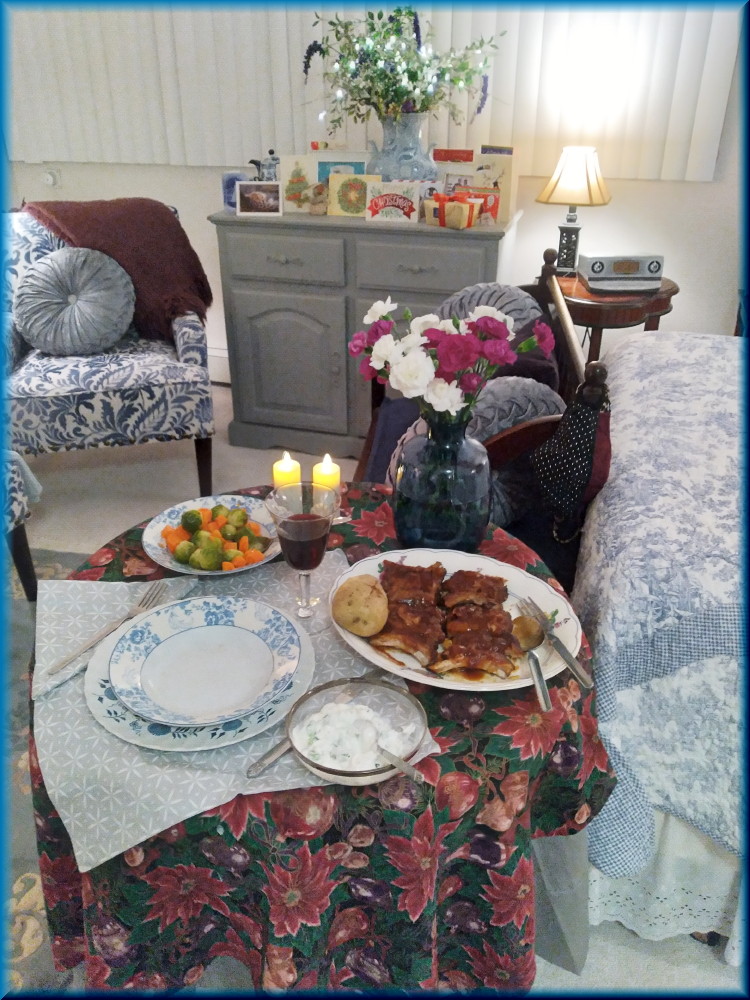 翻看手机短信,除了彼此的问候关心,也是她日常大事件的汇报。去年年初,新冠刚有点动静,我们开始相互提醒;然后是中国新年她从未缺席的祝贺。三月,运动中心因疫情关门无处去学瑜伽了,改为走路;四月,她发来我们以前一起欢聚的旧照说想念我们和那些快乐时光;母亲节,她给自己买了花;六月,她去另一个小城的长期护理中心看望她一位101岁的老朋友;我的生日她寄来纸质生日卡并提醒我查收;八月,她和已故先生约翰的60周年结婚纪念日,买了花缅怀一下;南瓜节她的晚餐照片发给我们馋馋;她的生日收到我们的卡和礼物非常开心,她给自己买了香水庆祝;约翰的14周年忌日,她想念他,买了他喜欢的花;还有她那个不着调的老儿子分享一张搞笑圣诞装扮也发给我乐一乐;她的圣诞晚餐依然是浓浓的仪式感,还有她喜爱的红酒作伴…..