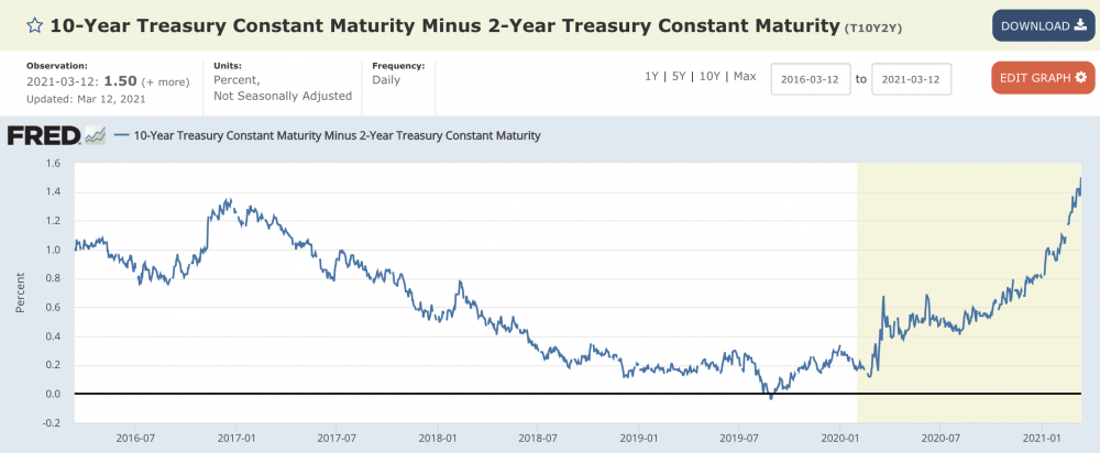 相比之下,道琼斯和标普500由于大量周期性价值股的存在,会因为经济增长的带动而出现继续上涨的态势,但标普的情况可能会比较微妙,因为科技股在其总市值中的占比过大,因此利率的上涨极有可能会把整个大盘拉下水。(在此之前,市场也有可能因为大量散户把1400元的纾困支票投入股市而出现短期暴涨的情况。)