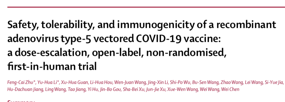 这两天大家的电脑或者手机估计都被国内陈薇院士率领的腺病毒新冠疫苗刷屏了。这的确是鼓舞人心的一项临床试验。非常希望这项临床试验能够尽快的取得突破,疫苗可以尽快的、安全的用到人身上。