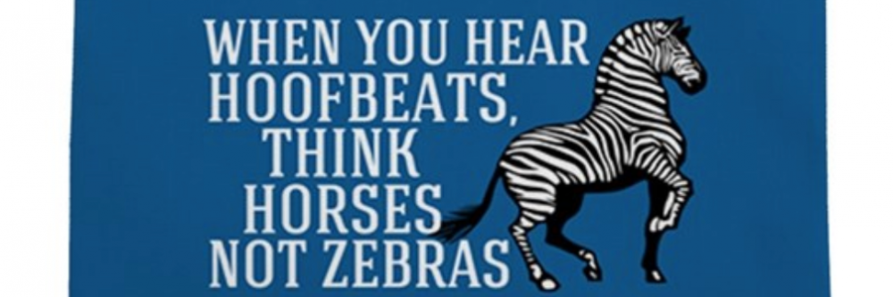 言下之意是:在临床诊断方面,我们要首先考虑常见病,常见并发症,而不是一上来就考虑罕见病。这句话经常出现在医学生的临床教学上,因为医学生刚刚上临床时,往往一下子就会把一些罕见病的诊断套在具体的病人上,如果是按照这种思路,可能会造成很多不必要的检查和医疗资源的浪费,给病人带来沉重的心里压力,同时还把自己吓坏了。
