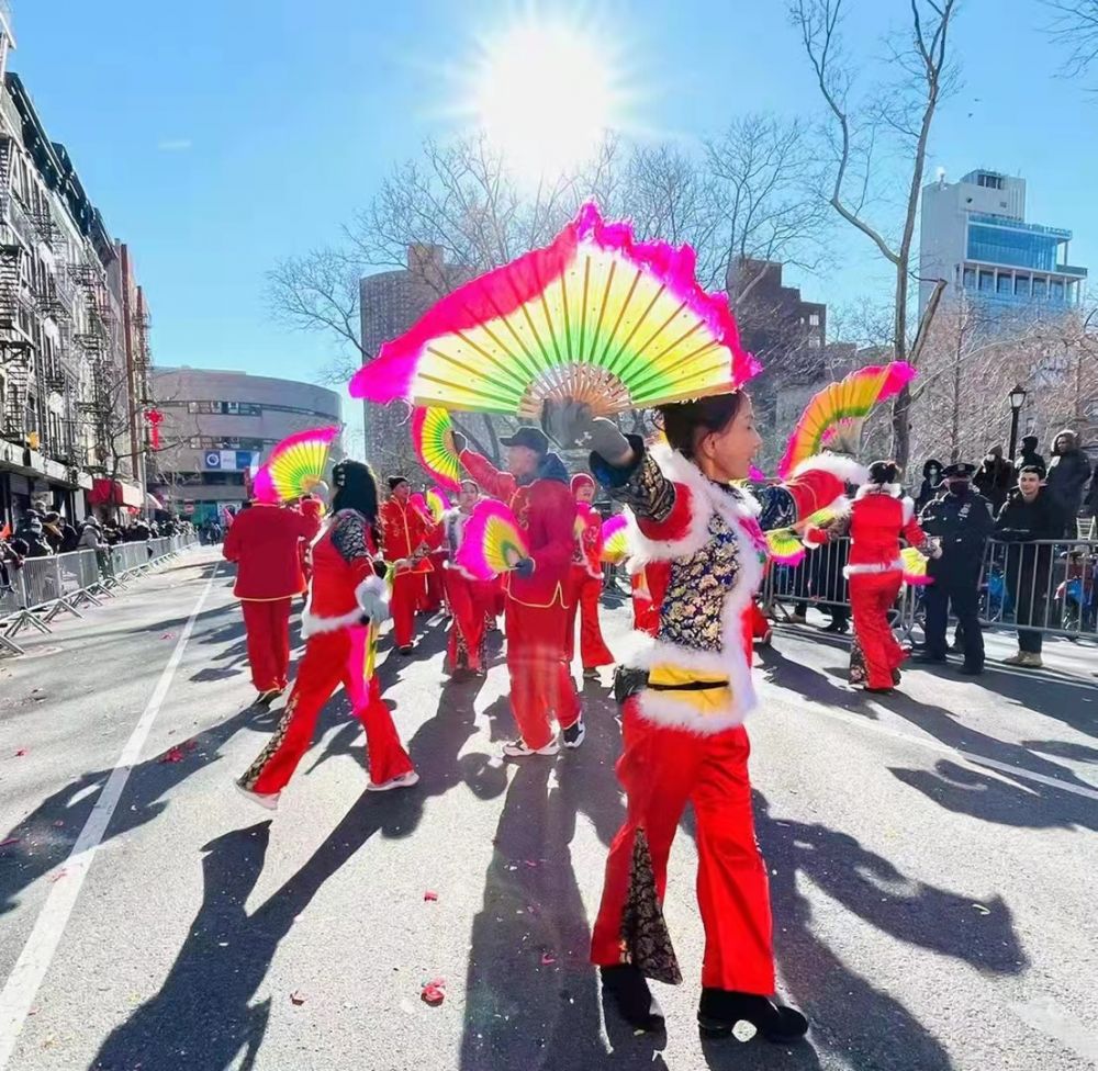 我参加了2022年2月20日在纽约华埠举行的(新春文化大游行)后,才喜欢上这种舞蹈的。我具体参加的是纽约东北同乡会的花车及东北大秧歌队。全队有四十几人。男少女多。女生有二十六七人。