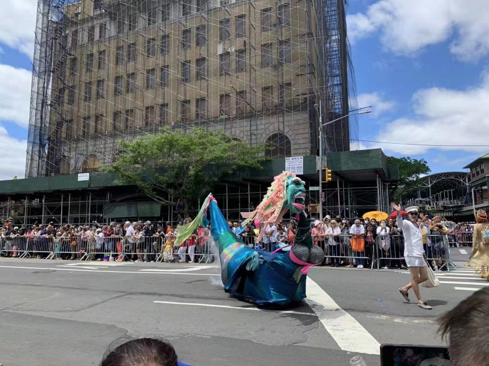 康尼岛“美人鱼”游行,是纽约康尼岛海滩游乐园举办的保持了四十年的传统游行项目,它于每年夏季海滩开启前举办,是以“美人鱼”为主的海洋题材,由市民参与的大型化妆游行,最多一届曾吸引80万人观光。它因疫情之故停办了两年,今年6月18日又盛大启程了。(我了解它其实是因孩子感兴趣。我因担心天热孩子中暑想要驱车载孩子回家,就赶着趟儿去布鲁克林,顺便瞧一下热闹。。。)