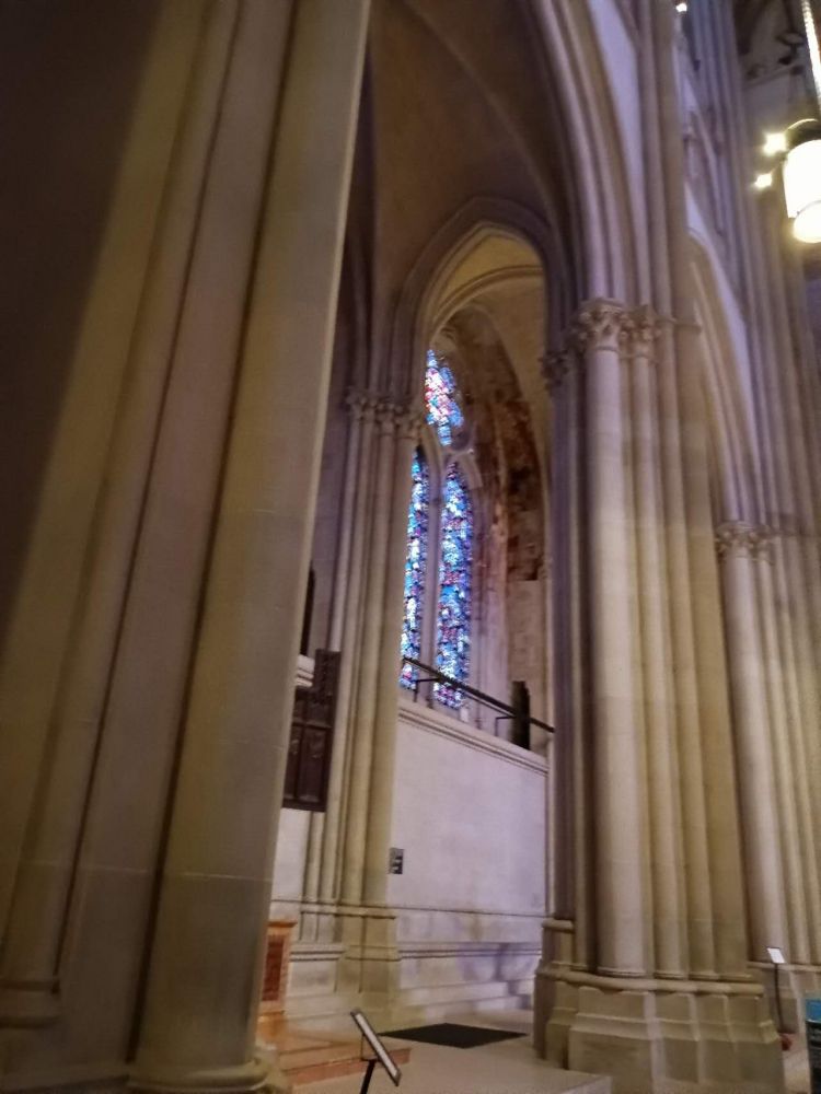 这教堂坐落在曼岛112街,是一座拥有100多年历史的大教堂,是世界上最大的哥特式教堂。它曾接待过英国伊丽莎白女王,也有克林顿夫人等尊贵客人在其内大厅讲过话。是个跟得上时代节奏的与时俱进的教堂。